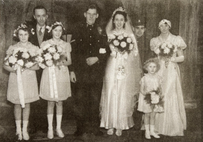On 25th November 1942, in a ‘services wedding’ at St. Peter’s he married Enid Mary Luxford, a private in the Auxiliary Territorial Service whose home was Highfield Hedge in Newpound. The reception was held in the Bat and Ball and Highfield Hedge became their home. A son was born in 1944.