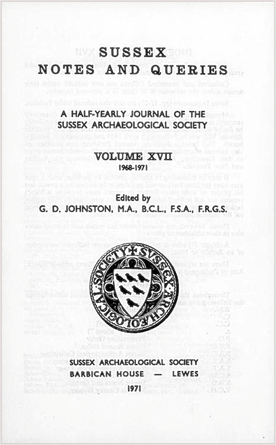 historian. He was a member of the Sussex Archaeological Society, edited one of its journals, Sussex Notes and Queries and wrote numerous articles for that and other publications. His chambers were in Lincoln’s Inn and in his professional life, one of his briefs was to bring a petition to appoint a Receiver and manager of the estate of the writer Edgar Wallace in 1932 whose financial affairs after his death were found to be in disarray.