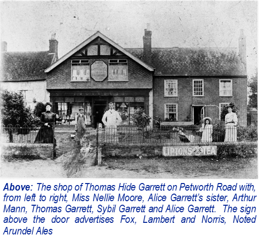 Thomas Garrett remained in Wisborough Green until 1938 when he moved to Worthing. The 1939 Register shows him living with his eldest daughter Margery, a governess, and Nellie Moore who was his housekeeper.
